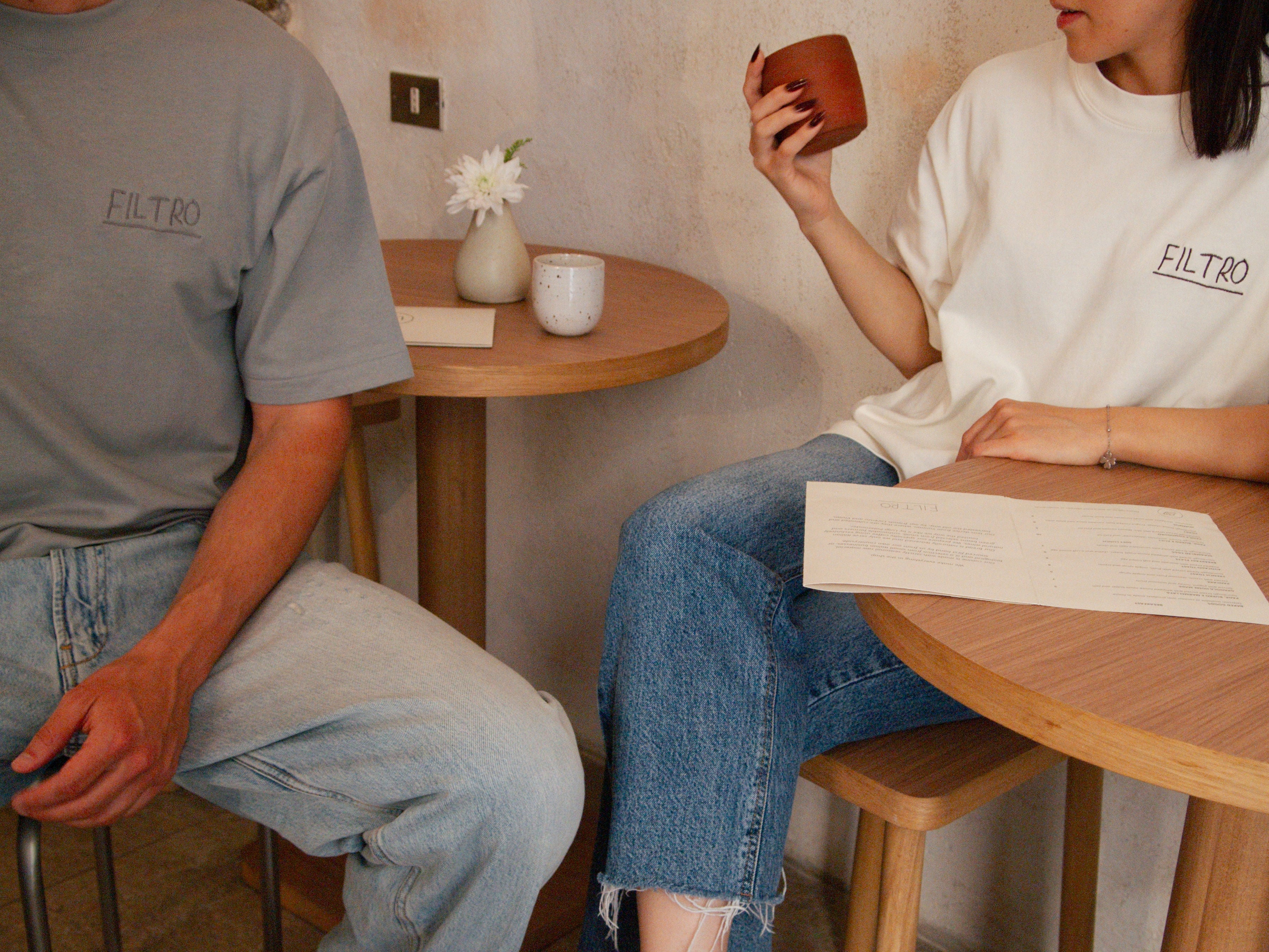 Filtro merchandise is available exclusively in store at our café in Salerno. We don’t offer shipping or online delivery at the moment, our merch is meant to be discovered the same way as our coffee: by coming in.